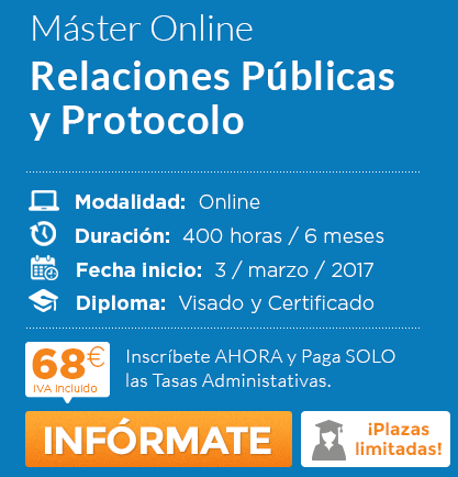 La formación  que presentamos, Master en Relaciones Públicas y Protocolo permite adquirir aquellas competencias y habilidades técnicas específicas para las relaciones públicas internas y externas, ocupándose de las relaciones informativas con los medios de comunicación, de la organización de eventos,  la comunicación interna, … y, en definitiva, satisfacer las demandas de interacción comunicativa de todos los públicos de una entidad.